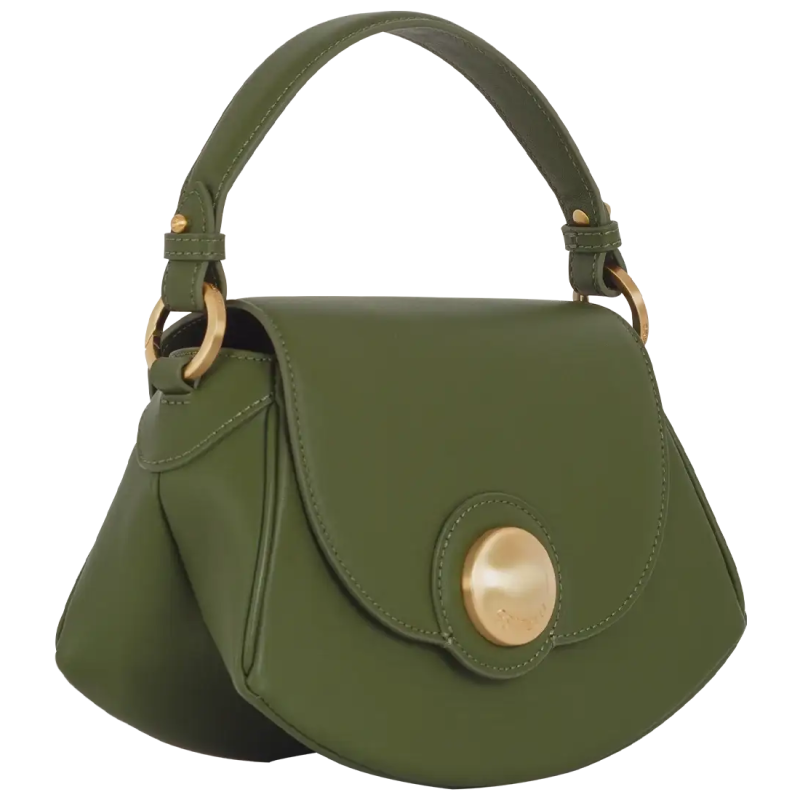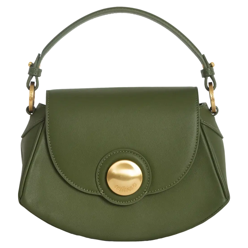A 7PM Green é uma bolsa pequeno-média para todas as ocasiões. Com botão de aço inoxidável personalizado. Tampa com fecho de imã e alça extra ajustável.